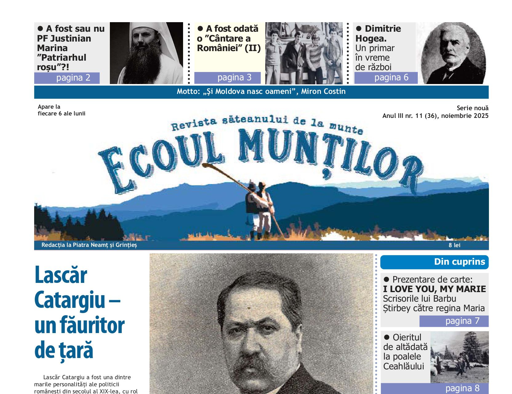 Ne apropiem de sfârşitul celui de-al treilea an de „Ecoul Munţilor”, seria sa nouă. O revistă care, se pare, va supravieţui chiar şi în astfel de vremuri. Grele pentru cultură, grele pentru presa scrisă! S-au anunţat noi abonaţi, aşteptăm şi alţi doritori, cu aprobarea conducerii, preţul anual a rămas acelaşi.