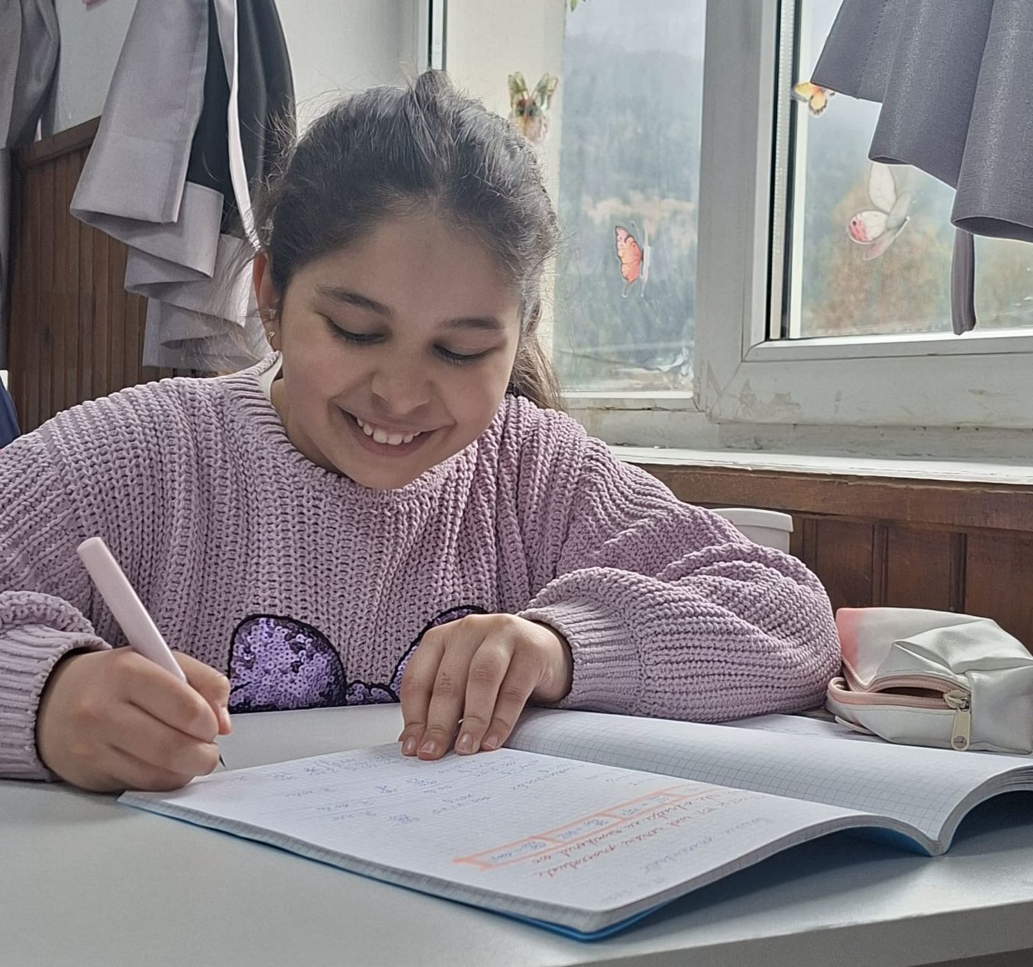 Prima dată când am vazut-o în bancă, mi-a lăsat impresia că este o fetiță cu minte de om mare și chip frumos de copil . Serioasă, prea serioasă pentru vârsta ei, atentă la orice greșeală, perfecționistă și muncitoare,se detașa mereu de colegi prin modul în care se exprima și atenția la detalii. Uneori era sceptică , eu fiind noua doamnă învățătoare, cea are aveam să ma bucur împreună cu ea de performanțele ei în viitor, alături de familie și colegi.