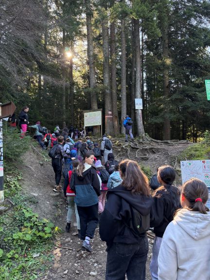 Odată ajunși la destinație, ghidul nostru ne-a întâmpinat și ne-a ajutat cu cazarea. Ghidul ne-a explicat ce vom face și ne-a condus într-o pădure din apropierea cazării, unde am construit împreună un schelet de foc și un adăpost folosind materiale din natură. La final, ne-a felicitat pentru munca depusă, iar apoi am plecat într-o scurtă plimbare. La capătul traseului am descoperit o cruce mare, unde ghidul ne-a dat un șablon cu multe culori și ne-a provocat să căutăm obiecte din natură care să corespundă culorilor respective. Seara, am participat la o prezentare interesantă despre animale; am văzut specii fascinante și am învățat lucruri noi despre ele. Ziua s-a încheiat cu o petrecere unde am dansat și ne-am distrat împreună, după care ne-am retras în camere pentru odihnă. A doua zi, am urcat pe muntele Ceahlău, o experiență minunată care ne-a pus la încercare rezistența, dar ne-a oferit priveliști spectaculoase. La întoarcere, ne-am odihnit și am rămas cu amintiri frumoase dintr-o tabără plină de aventuri și învățături.
