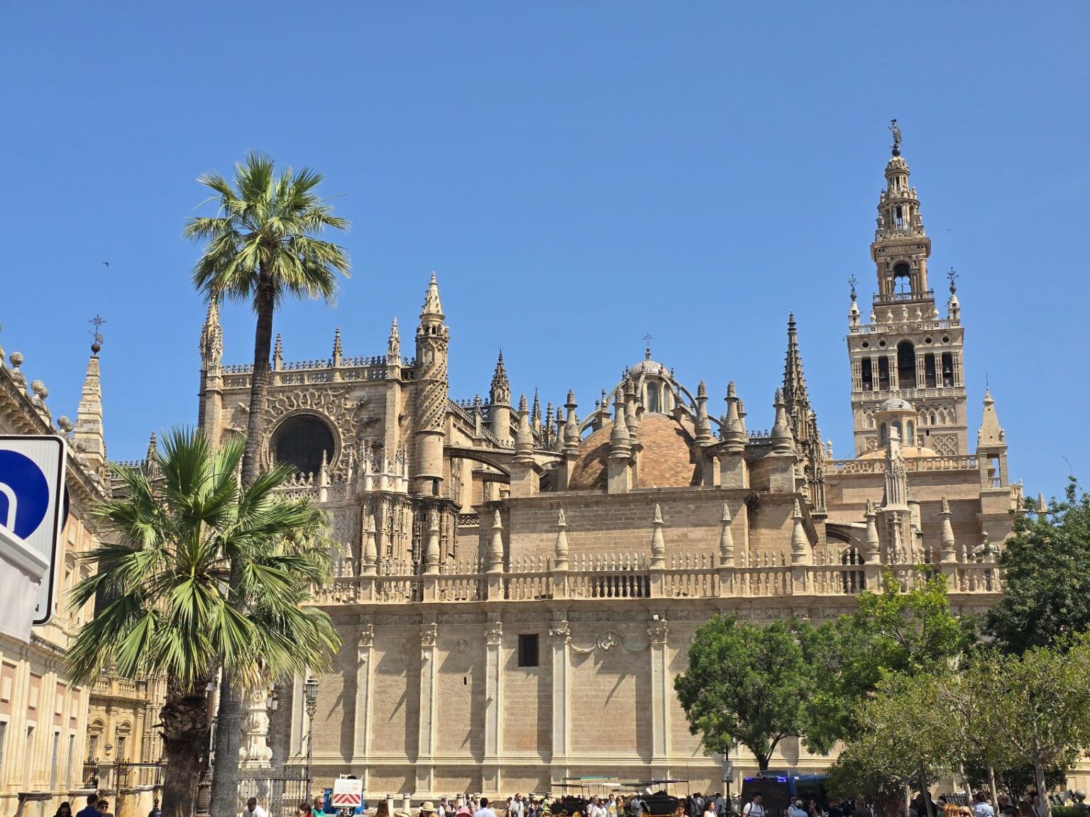 Plecând de pe malul râului, după două străduţe cochete, se ajunge la Catedrala Sfânta Maria din Sevilia, uriaşa construcţie ridicată peste o moscheea, cum era obiceiul în zona, mai ales în urma cuceririlor creştine şi expulzarea arabilor din sudul Spaniei. Catedrala gotică care-l are între zidurile sale pe Cristofor Columb, cu sarcofagul lui fiind ţinut pe umeri de patru regi, are o înălţime de 105 metri şi este a doua catedrală ca şi mărime din lume. Intrând, îţi dai seama că eşti mic şi poate aceasta a fost şi intenţia construirii ei, de a te transforma în ceva nesemnificativ şi umil în vastitatea casei Domnului pentru care ai plătit 14 euro. Sau poate doar au avut suficiente materiale pentru a o face aşa de mare şi strălucitoare.
